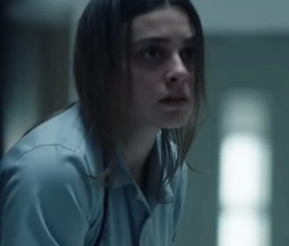 Una chica adolescente con una sudadera azul, de pie de forma incómoda apoyándose en sus muletas. Una pierna llevaba una férula; su equilibrio era inestable y su postura defensiva, como si ya esperara lo que iba a pasar.